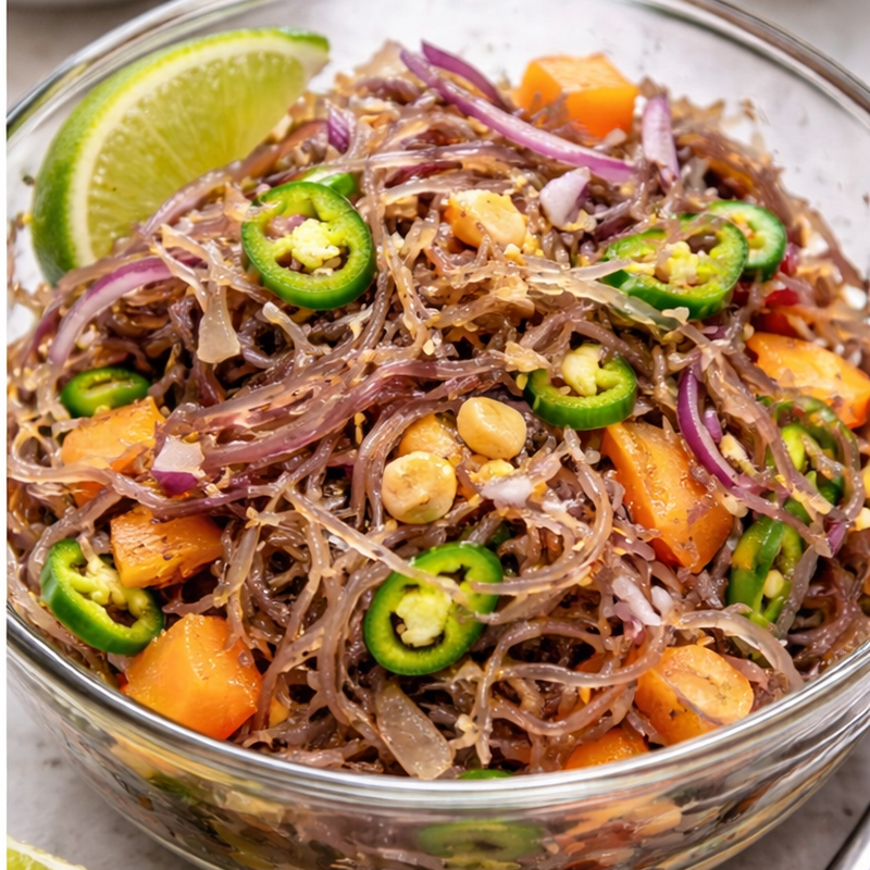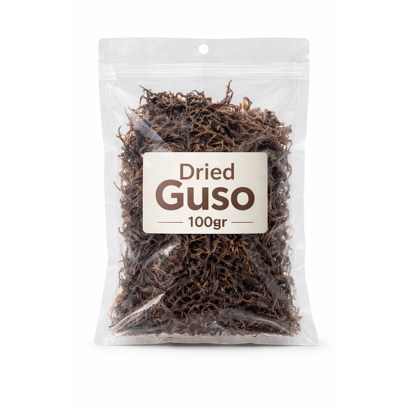 Soak the dried guso in water until softened, rinse well, and serve with vinegar, onions, tomatoes, and seasonings for a classic Filipino seaweed salad.