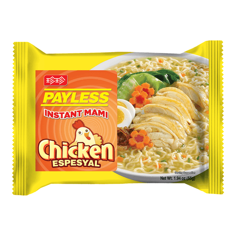 Payless Chicken Espesyal is a popular Filipino instant noodle soup (mami). It delivers a comforting and savory chicken broth paired with firm noodles. It is quick and easy to prepare on the stove or with boiling water, making it a perfect choice for a fast lunch or a warm snack.
