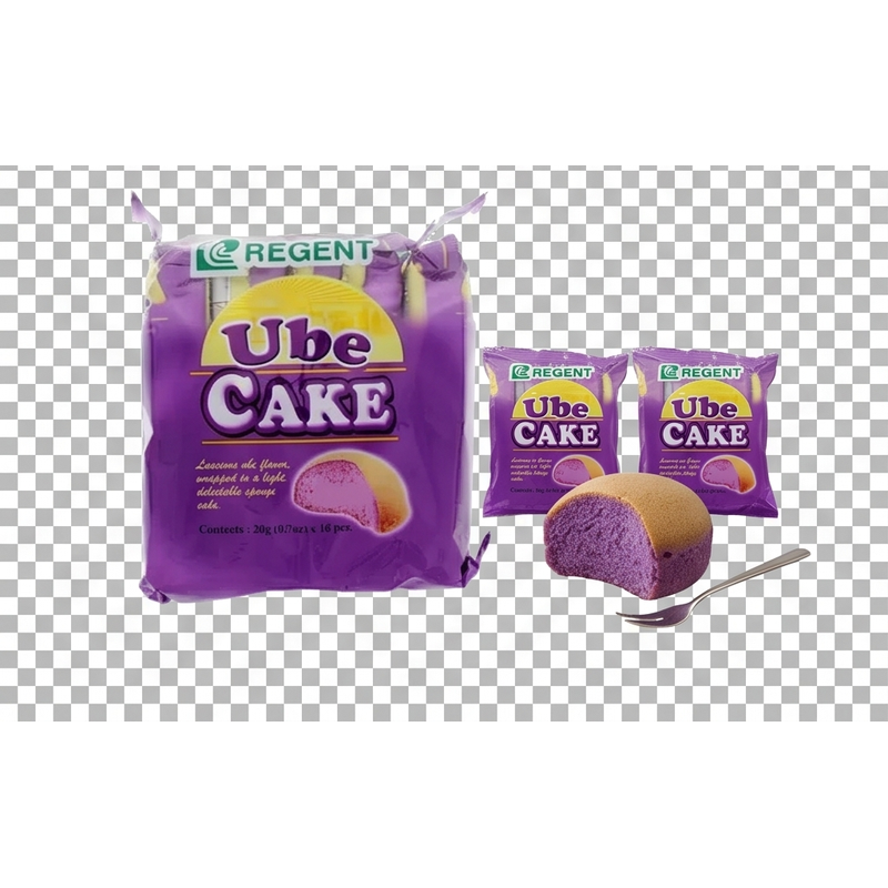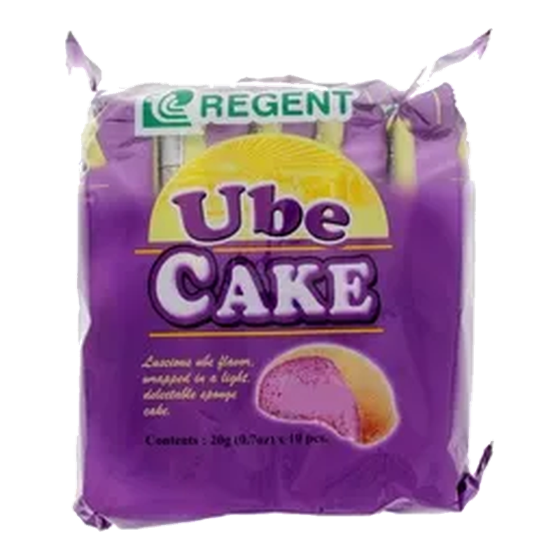 Regent Ube Cake (10 x 20g) Regent Ube Cake consists of ten individually wrapped sponge cakes infused with the distinct, sweet flavor of ube (purple yam). These soft and fluffy cakes are a popular Filipino snack, ideal for lunchboxes, on-the-go snacking, or pairing with your afternoon tea or coffee.